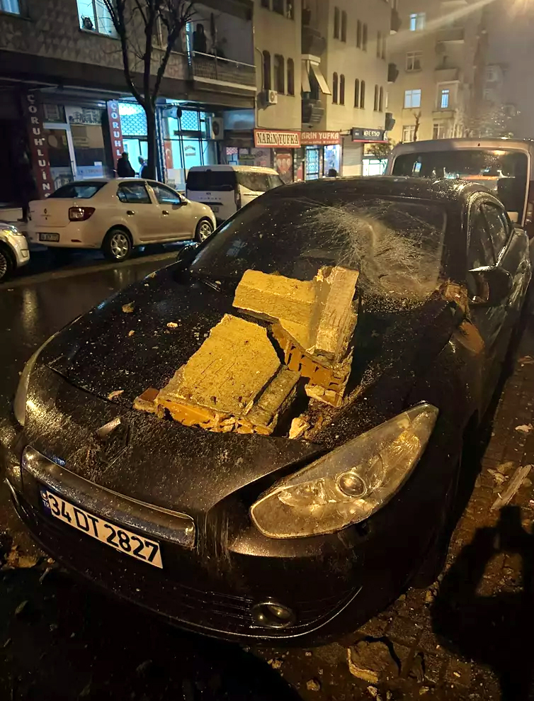 Olayda yaralanan olmazken, üzerine beton parçaları düşen 2 araçta hasar oluştu.