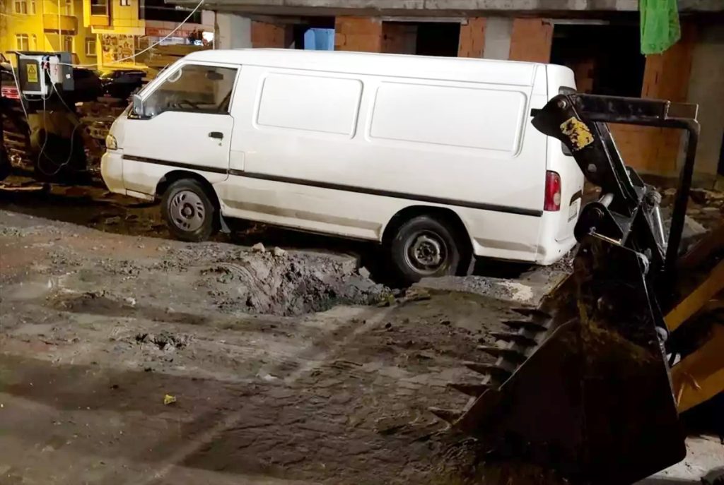 Bahçelievler’de kuvvetli yağış nedeniyle çökme meydana gelen yolda oluşan çukura bir aracın tekerlekleri saplandı.