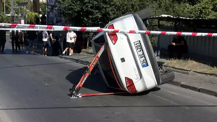 Kazada araçtan son anda kaçan Ahmet T., “Motorun üstünde duruyordum. Yanımdaki arkadaşla sohbet ediyorduk. Yanımdaki beyaz arabaya yaslanmıştı. Arkadan şiddetli gelen araç, gelip duran araca vurdu. Yaklaşık 15-20 metre fırladı. Onun şiddetinden dolayı kendimi motordan aşağı attım. Eğer atmasaydım ayağım motorun altında ezilebilirdi. Motosiklet de beyaz araç da park halindeydi. Kaza sonrasında bize çarpan araç devrildi. Devrilen araçtaki kişide herhangi bir durum yok. Sadece beyaz araca yaslanan arkadaş yaralandı. O da ambulansla hastaneye kaldırıldı. Sol taraftan ayağını hissetmediğini söyledi” dedi.