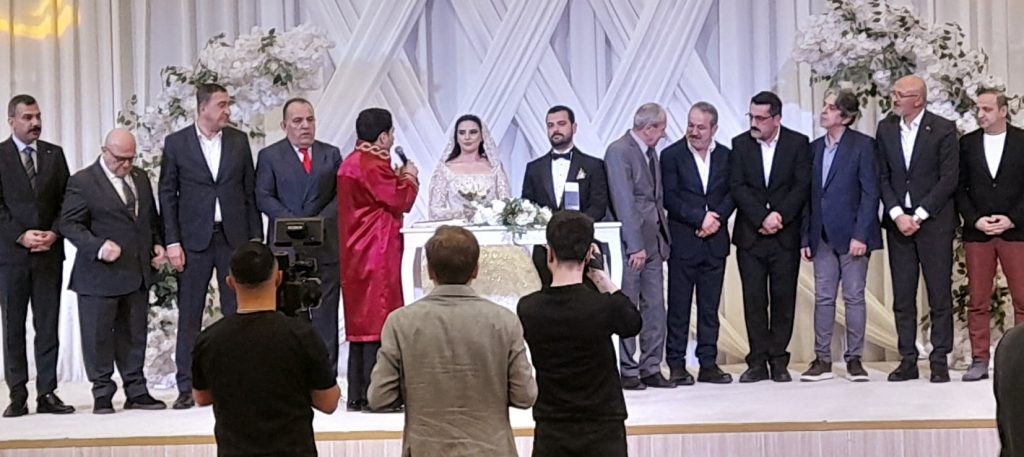 Bahçelievler Kongre Merkezi’nde gerçekleşen düğün, siyaset, sağlık ve iş dünyası camiasından çok sayıda önemli ismi bir araya getirdi. Yoğun katılımın olduğu gecede çiftin nikâh şahitliklerini salonda önde gelen isimler üstlendi.