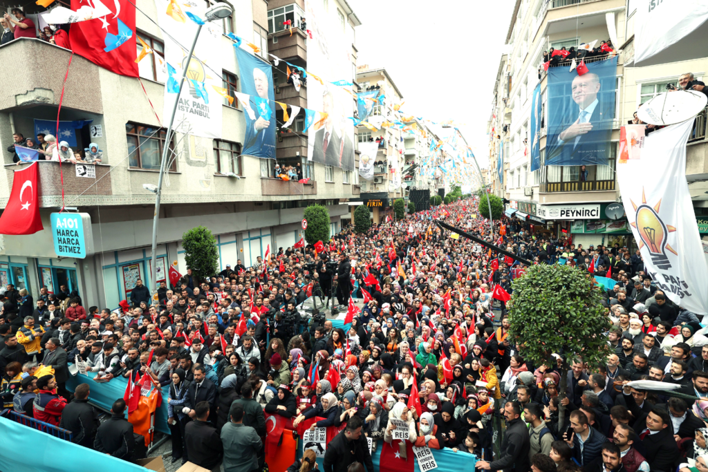 Cumhurbaşkanı Recep Tayyip Erdoğan Bahçelievler’de vatandaşlarla buluştu. Düzenlenen mitingde konuşan Erdoğan muhalefeti eleştirerek “Türk siyasi tarihinin en büyük mitingi olan Atatürk Havalimanı mitingimiz İstanbul seçimlerindeki tercihini şimdiden ilan etmiştir. İstanbul ne dedi. ‘Türkiye yüzyılı’ dedi. İstanbul terör örgütlerinden medet umanlara karşılık ‘birlik ve beraberlik’ demiştir. İstanbul, koltuğuna kasetle oturanların bu ülkenin yönetimini kasetle ele geçirme operasyonlarına geçit vermemiştir. İstanbul tefecilere ülkesini teslim etmek isteyenlere, ‘istiklal ve istikbal’ diyerek mukabelede bulunmuştur. Londra tefecilerinden 300 milyar dolar alacakmış. Buna inandınız mı? Bay bay Kemal sen avucunu yalarsın. Tefeci tefeciye kuruş vermez. Esrar eroin kaçakçılarından götürdüğü paralarla Londra tefecilerinden para alacak. Bu ne menem iştir. Bunun yanındaki akıl hocalarından da yoğurt olmaz. Tefeci böyle kalkıp da kül yutar mı? İstanbul evlatlarının geleceğini örgütlerin, sapkın akımların eline bırakmak isteyenlere eyvallah etmemiştir” ifadelerini kullandı.