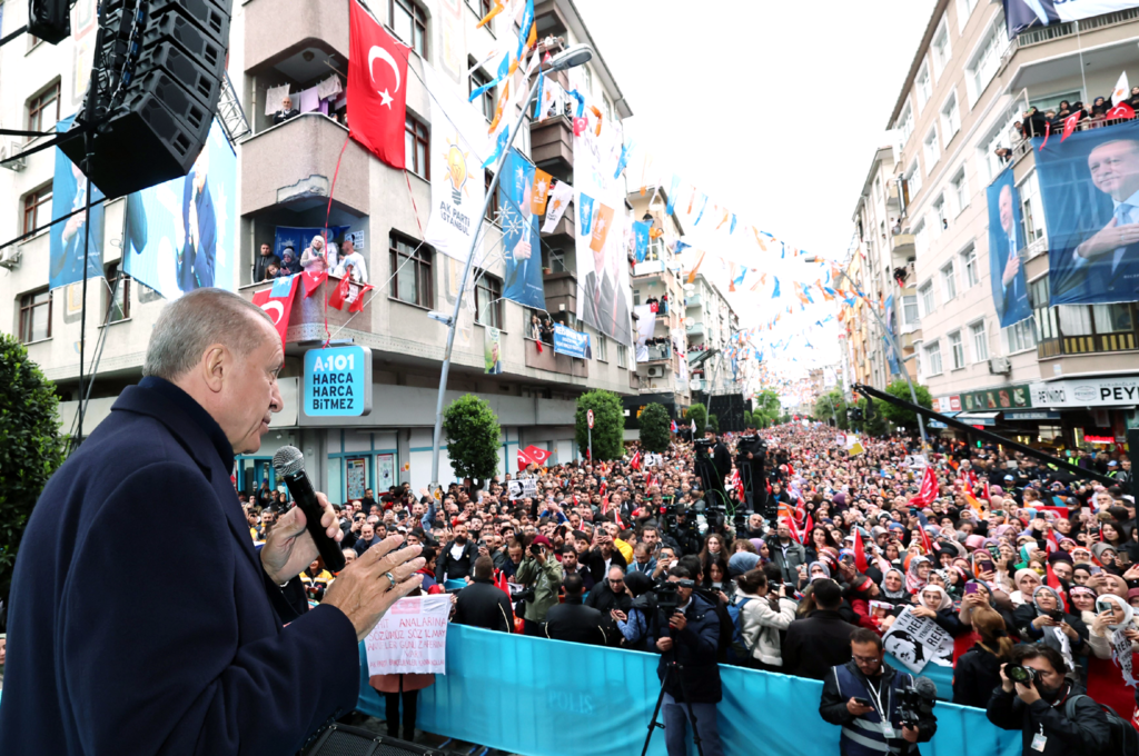Erdoğan açıklamalarını şöyle sürdürdü: “CHP’yi de kurdukları masayı da teslim almış olabilirler. Bazı belediyeleri bir şeklide teslim almış olabilirler, ama milletimiz ülkenin yönetimini onlara bırakmaz. Biz 2002’de iktidara gelirken bu ülkede artık hiçbir şey, artık eskisi gibi olmayacak demiştik. Muhalefet için 14 Mayıs’tan sonra artık hiçbir şey eskisi gibi olmayacak. Milletimiz bunları emekliye ayıracak ve Türkiye yüzyılına layık yeni isimlerin önünü açacak. 14 Mayıs demokrasi şölenimiz şimdiden hayırlı olsun. Bunun için seçim gününe kadar daha çok çalışmalıyız. Buradan ayrıldıktan sonra Pazar günü için hala kafası karışık olan bir akrabanızı, dostunuzu bulacaksınız. Kendisine selamımı söyleyin. Pazar gününün Türkiye Yüzyılı için niçin önemli olduğunu anlatmanızı istiyorum. Her akşam telefonunuzu elinize arayarak ahbaplarınızı arayıp Pazar günü aynı sözü onlardan da almalısınız. Şayet bunu yaparsak Pazar günü bu seçimi Allah’ın izni ile rekor bir oyla bitirmemizin önünde bir mani kalmaz” dedi.
