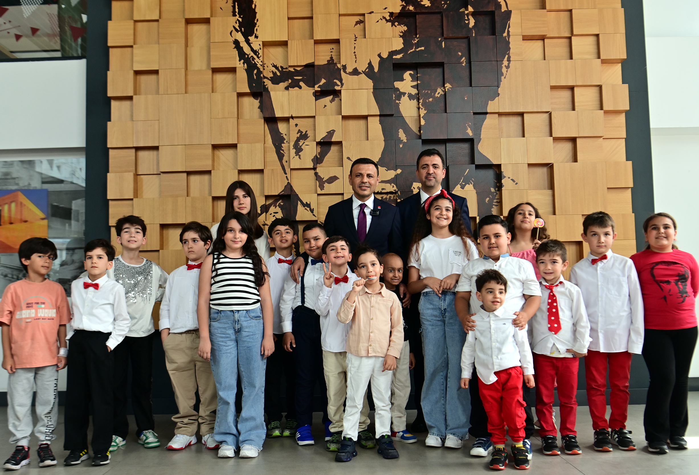 Koltuğu tekrar devir alan Özcan, öğrencilere sırasıyla hediyelerini dağıttı. Çelik, daha sonra il başkanlığının giriş katında öğrenci ve velilerle daha sonra sadece öğrencilerle 23 Nisan hatıra fotoğrafı çektirdi