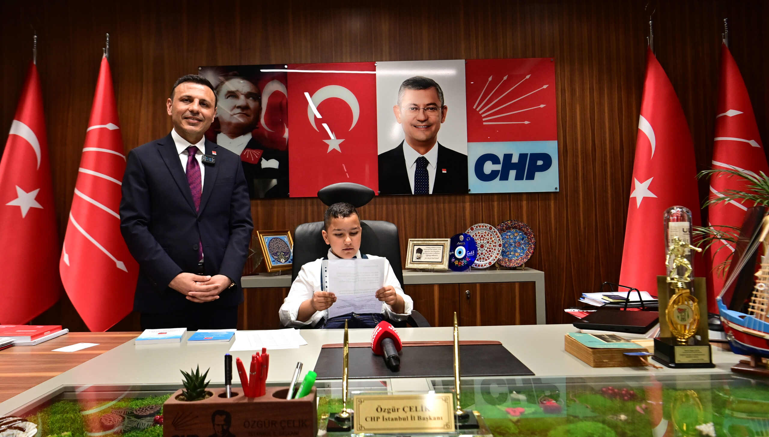Bahçelievlerli, Cumhuriyet Halk Partisi (CHP) İstanbul İl Başkanı Özgür Çelik, 23 Nisan Ulusal Egemenlik ve Çocuk Bayramı’nın 104’üncü yıldönümünde koltuğunu ilköğretim 2. sınıf öğrencisi Ayaz Eren Özcan’a devretti.