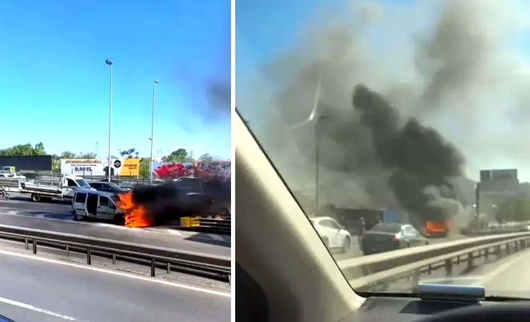 Yenibosna’da seyir halindeki hafif ticari araçta çıkan yangın, itfaiye ekiplerinin acil müdahalesiyle söndürüldü. D-100 kara yolunun Edirne istikametinde ilerleyen hafif ticari araçta, henüz tespit edilemeyen bir sebepten dolayı alevler yükselmeye başladı. Dumanların havada belirmesi üzerine sürücü, aracı güvenli bir şekilde emniyet şeridine çekti.